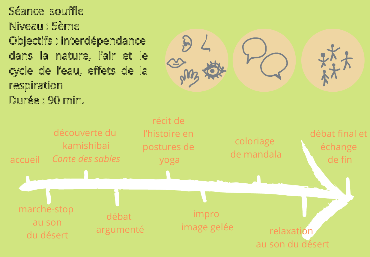 Les moments de vivre-ensemble où tous les participants peuvent se sentir pleinement impliqués dans leur tête et dans leur corps sont des facteurs-clés de joie, de bien-être et de mémorisation. Mon rôle est de vous proposer des séances pédagogiques sur un sujet défini au préalable, mêlant des pratiques corporelles ludiques et coopératives adaptées au stade de développement des élèves, des temps d‘échanges et des moments de relaxation, avec transmission des outils-clés aux élèves.