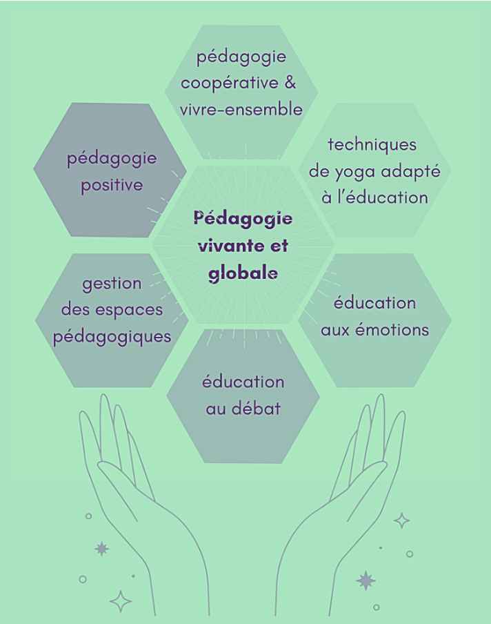 La pédagogie vivante et globale se construit autour de concepts tels que la coopération, l’éducation aux émotions ou encore les pratiques douces de yoga (et bien d’autres comme vu ci-dessus !).